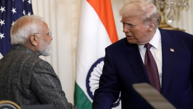 ভারতের প্রধানমন্ত্রী নরেন্দ্র মোদির সঙ্গে মার্কিন প্রেসিডেন্ট ডনাল্ড ট্রাম্প। ছবি: এপি